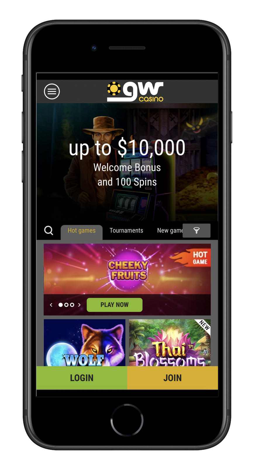 To start playing in this establishment from a mobile phone or in other GW's casino sister casinos, the user must select a suitable browser and enter the URL of the gambling site. After connecting to the service, log into your account with the same username and password that you used from your PC.